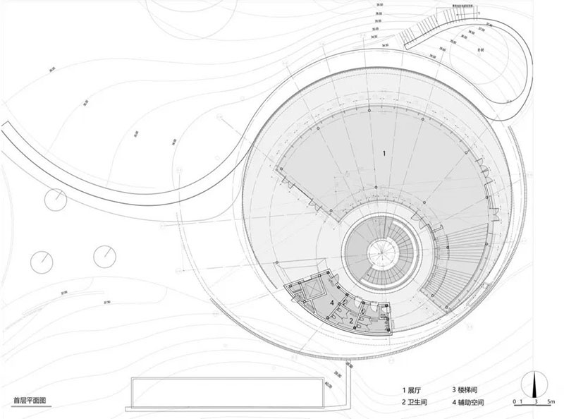 项目落成以来获得市民的广泛认可,成为公园游览中的重要休闲科普场所。项目首层设有休憩区,可较好融入场地让市民在观景休憩的时候展开自然的交流。负一层负二层设有岭南花卉历史展览区,不同尺度的展览空间让布展灵活布置,展览区延续建筑圆形的主题设计,形成多个圆形展区,为市民呈现令人印象深刻的展览体验。
