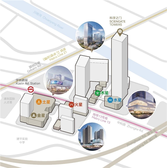 Arcadis凯谛思担纲设计的“陆悦天地「金星·土星」”项目,位于上海浦东张江“科学之门”核心区。 “科学之门”作为张江城市副中心的重要组成,由8个地块构成,总占地约17.75万㎡,总建筑面积达151.04万㎡,是张江科学城国家科学中心及上海科技创新中心定位的核心载体。