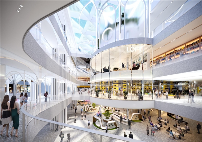 空间布局采用多元业态与灵动空间的有机组合,构建流动且丰富的游历体验,既激活商业潜能,也打造通往未来的生活方式体验场,彰显张江城市副中心作为科技创新引擎的现代城市形象。